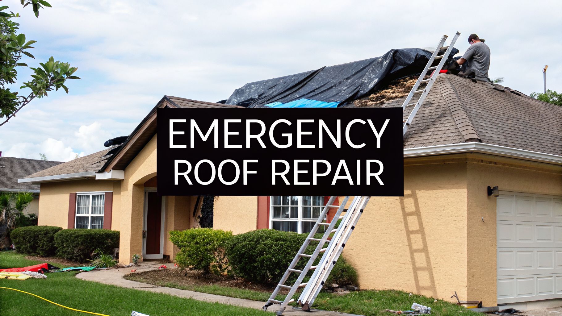 The go-to method for this is emergency roof tarping. This isn’t just tossing a cheap blue tarp over the hole. We use heavy-duty, reinforced tarps designed to hold up to Florida weather, securing them tightly with wood battens and specialized fasteners. The whole point is to create a watertight barrier that can survive wind and rain until we can schedule the real repairs.